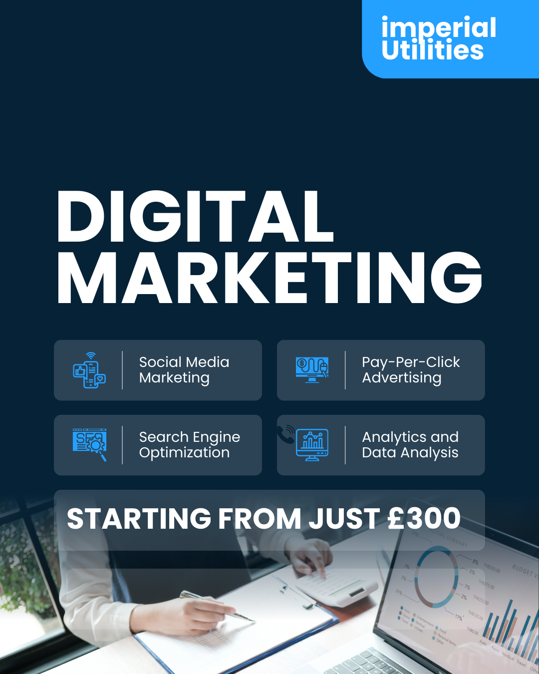 At Imperial Utilities, we go beyond supplying affordable electricity & gas — we empower businesses with complete digital solutions. From digital marketing (SEO, Google Ads, social media, ASO) to website and e-commerce development, we help your brand grow online. Our team also builds custom mobile apps and engaging games, while offering creative graphic design and social media management to strengthen your presence. With us, you get everything from reliable utilities to innovative digital services — all under one roof.
